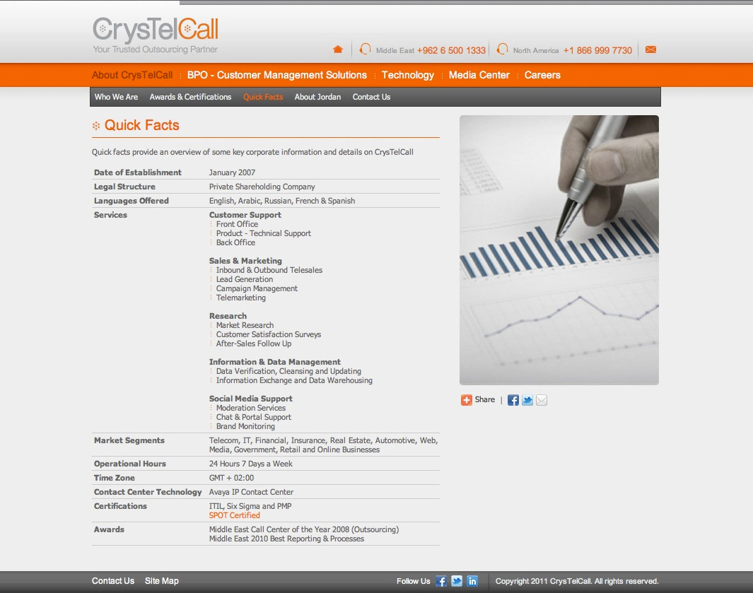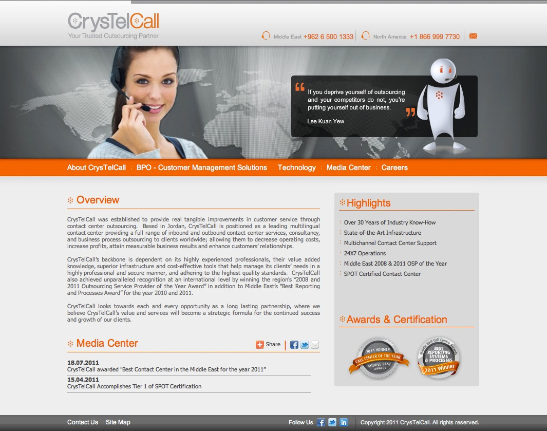 CrysTelCall is positioned as a leading multilingual contact center providing a full range of inbound and outbound contact center services, consultancy, and business process outsourcing to clients worldwide; allowing them to decrease operating costs, increase profits, attain measurable business results and enhance customers’ relationships.