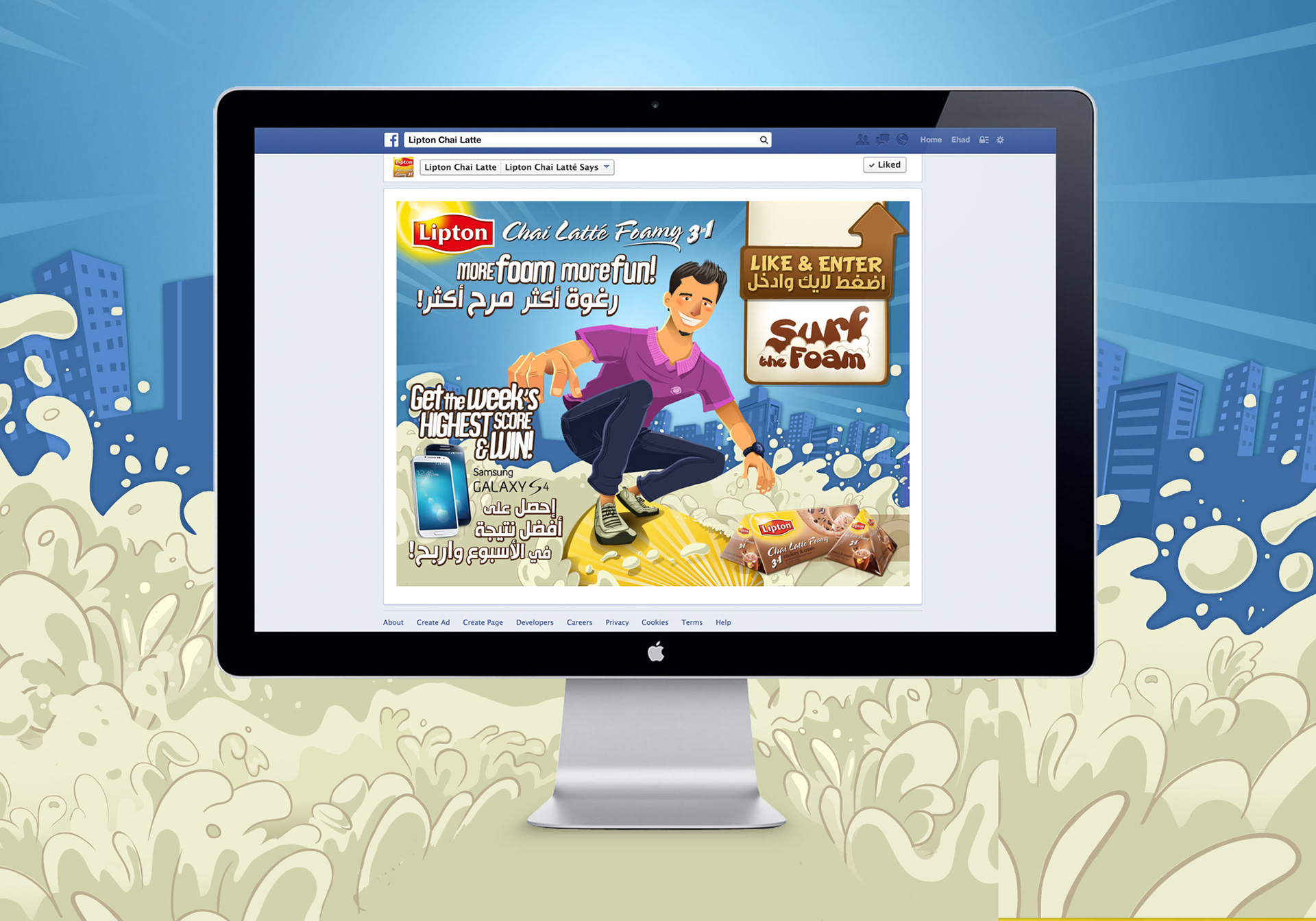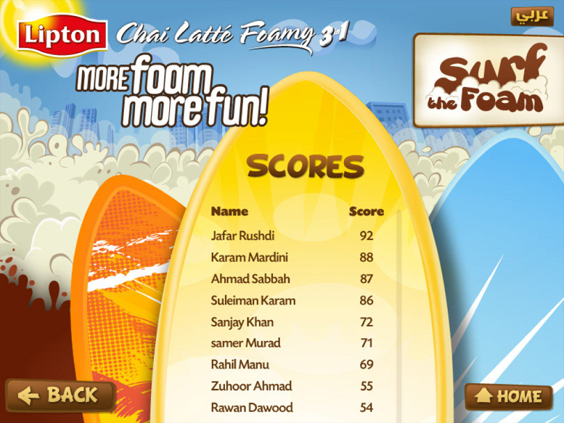 A fun Facebook Game targeting Youth, the goal behind the game was to spread awareness on the new Lipton Chai Latté range, Foamy. Illustrations done by Hassan Manasrah