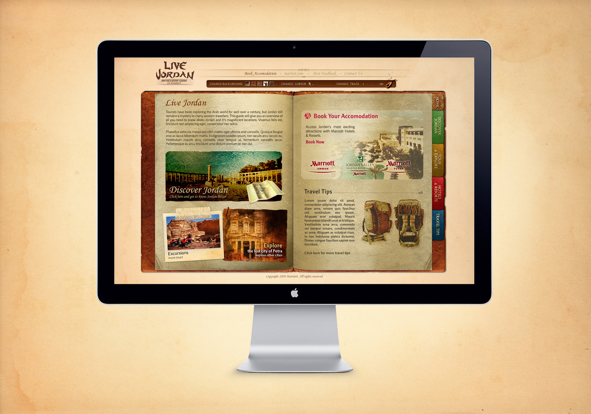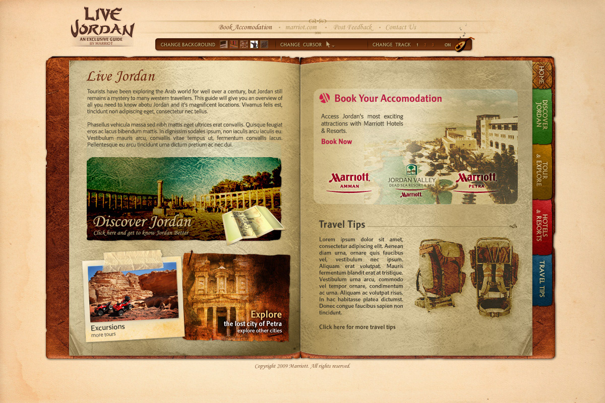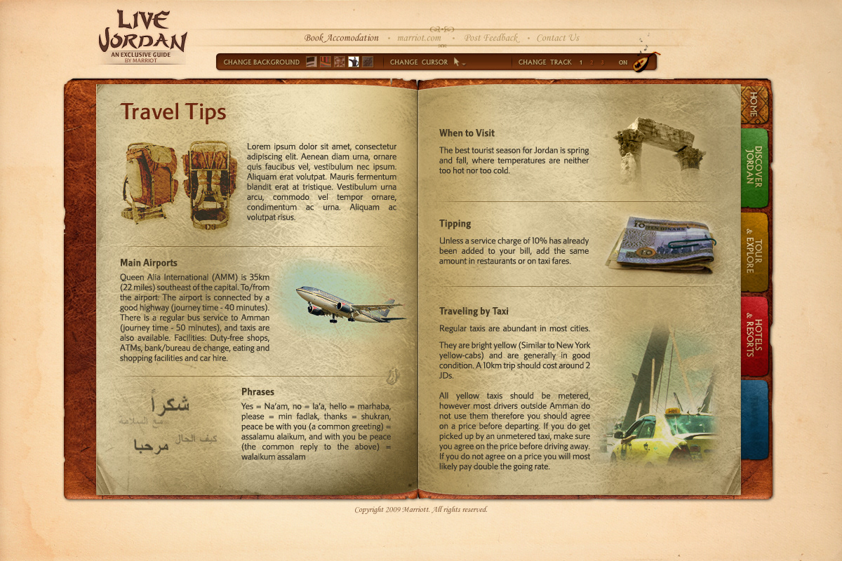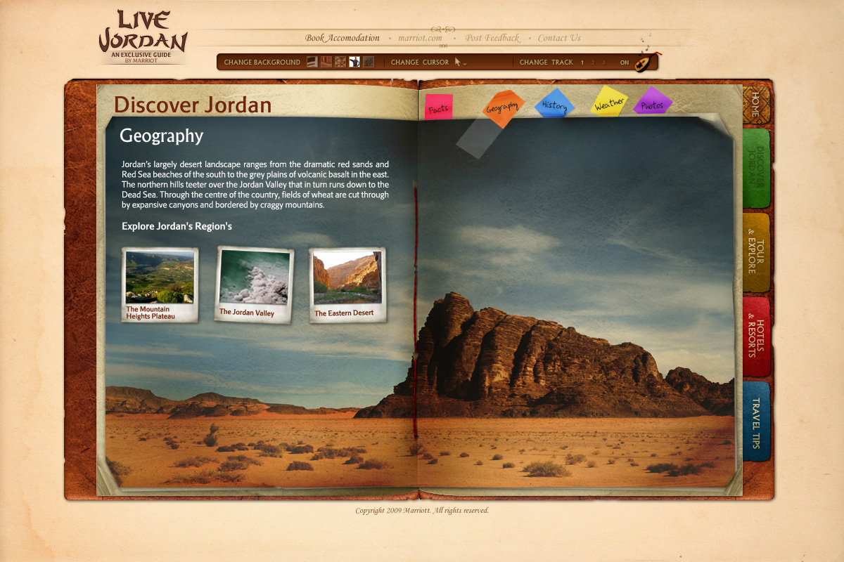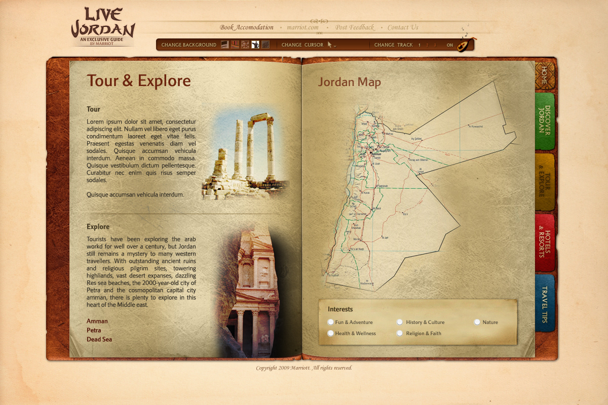An eGuide designed for the Marriott Hotel and Resorts in Jordan targeting tourists.