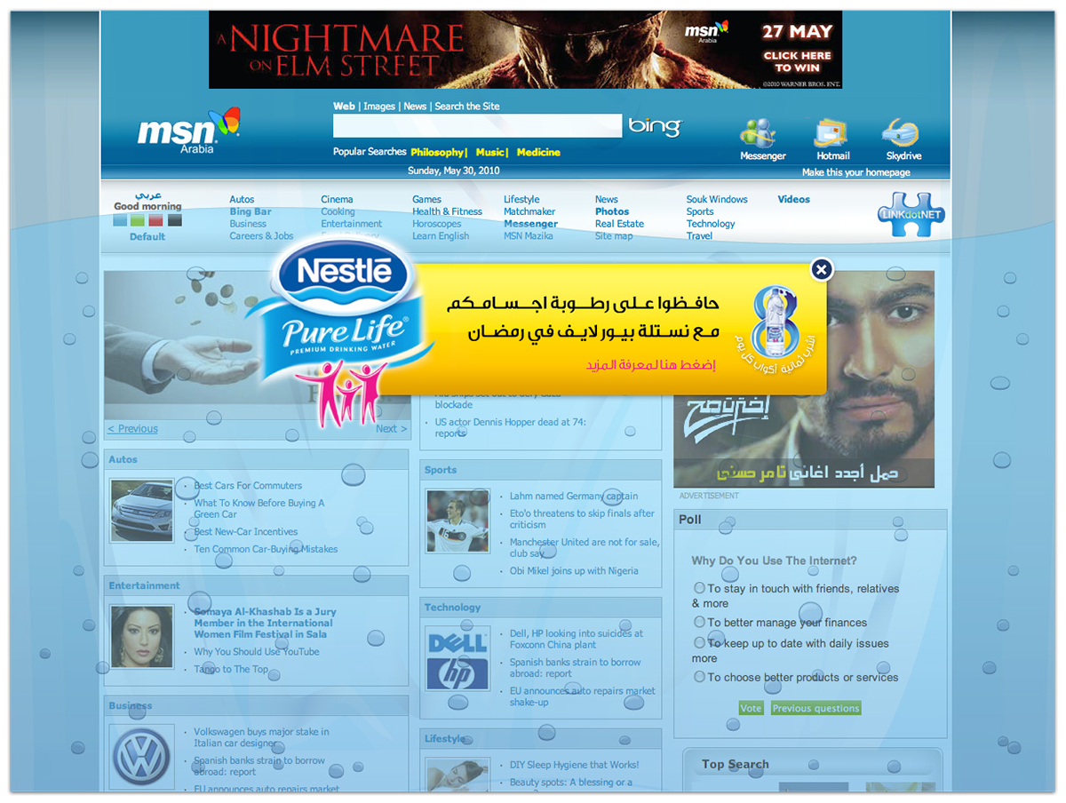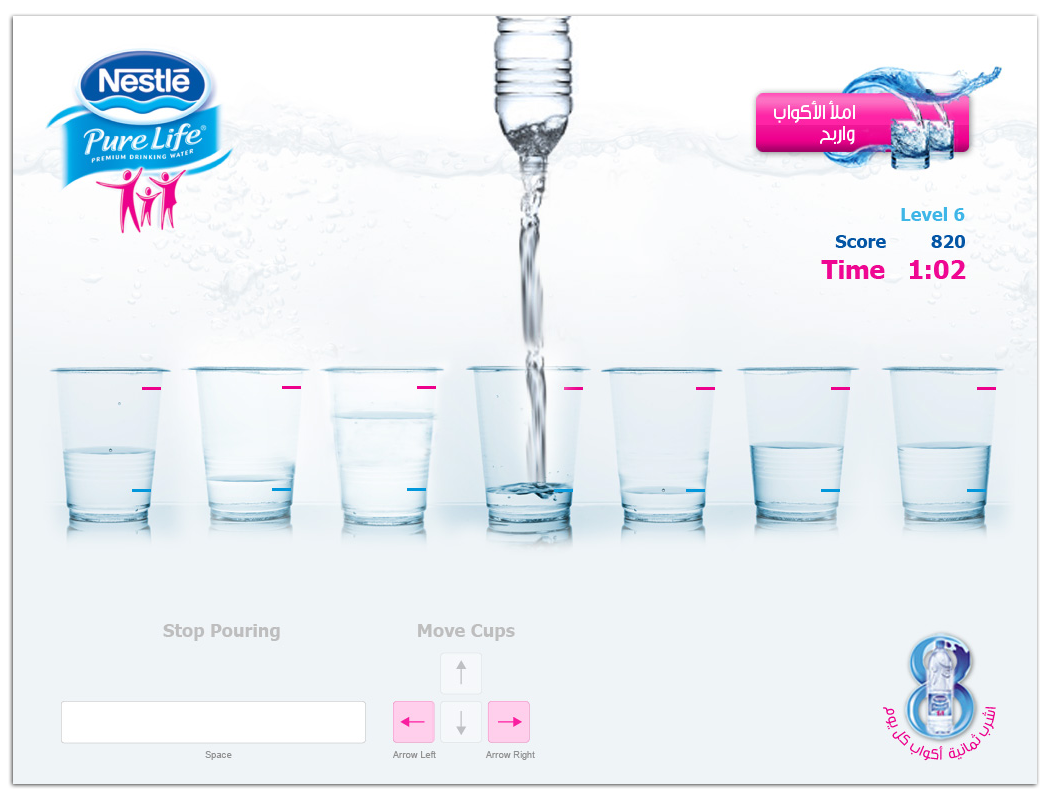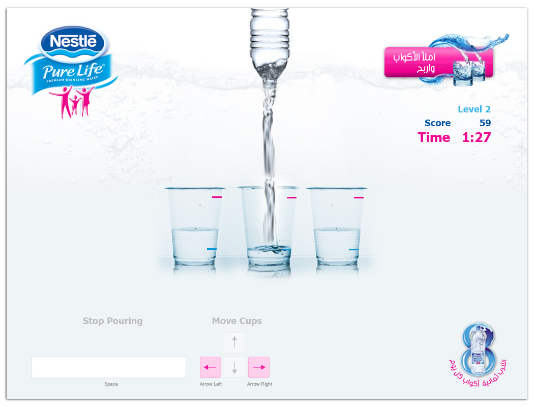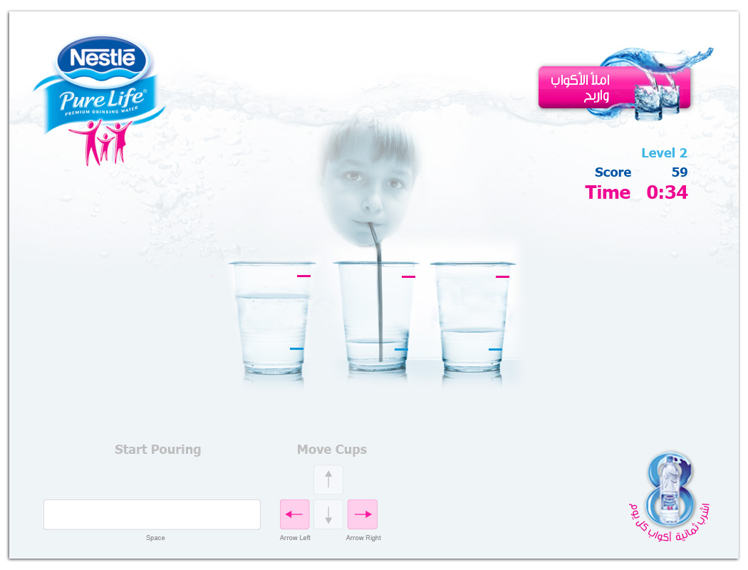 A microsite proposed for Nestlé for Ramadan and features a number of pages some of which are About Nestlé Water, Nutritional Facts, Why Nestlé Water is good for you and Ramadan Fasting Calendar (Imsakiyyat Ramadan) in addition to an engaging flash game for people to engage and share with their friends for the purpose of driving traffic to the microsite and increase exposure to Nestlé Water before and during the holy month of Ramadan.