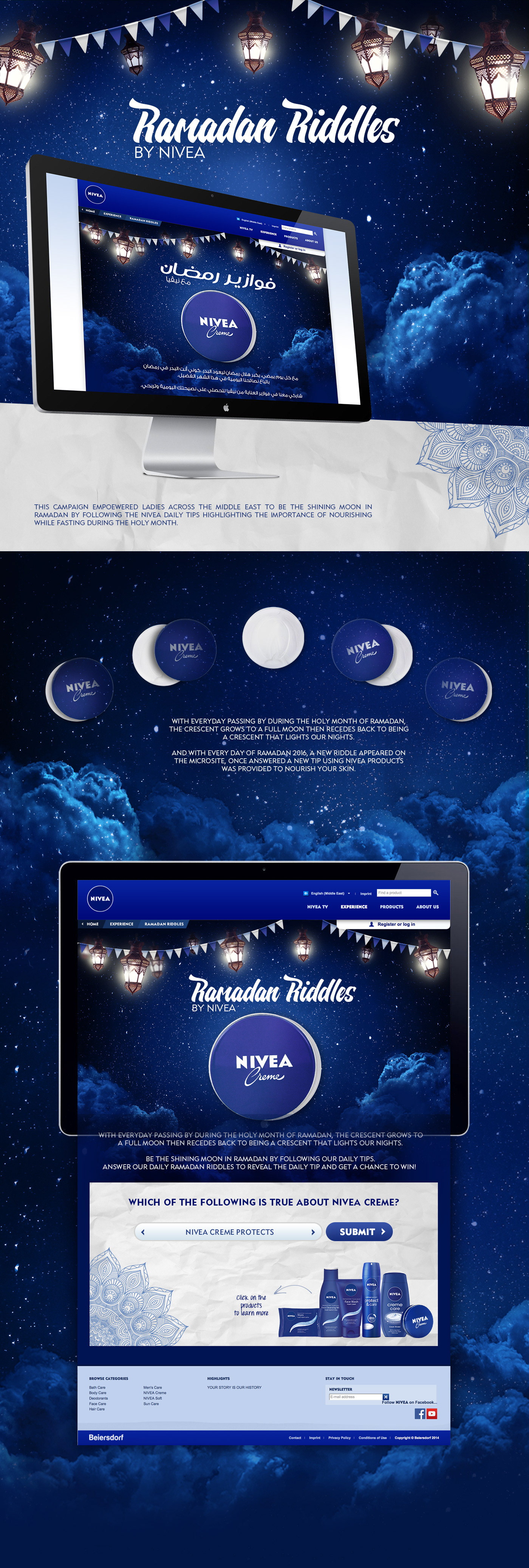 With everyday passing by during the holy month of Ramadan, the crescent grows to a full moon then recedes back to being a crescent that lights our nights. And with every day of Ramadan 2016, a new riddle appeared on the microsite, once answered a new tip using Nivea products was provided to nourish your skin.